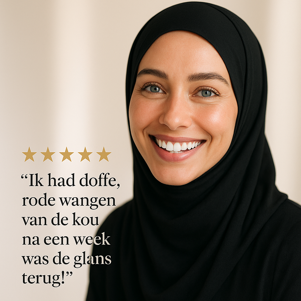 Droge plekjes verdwenen en mijn teint oogt gladder. Make-up zit mooier omdat mijn huid beter gevoed is. Halal en toch superwerkzaam — love it.