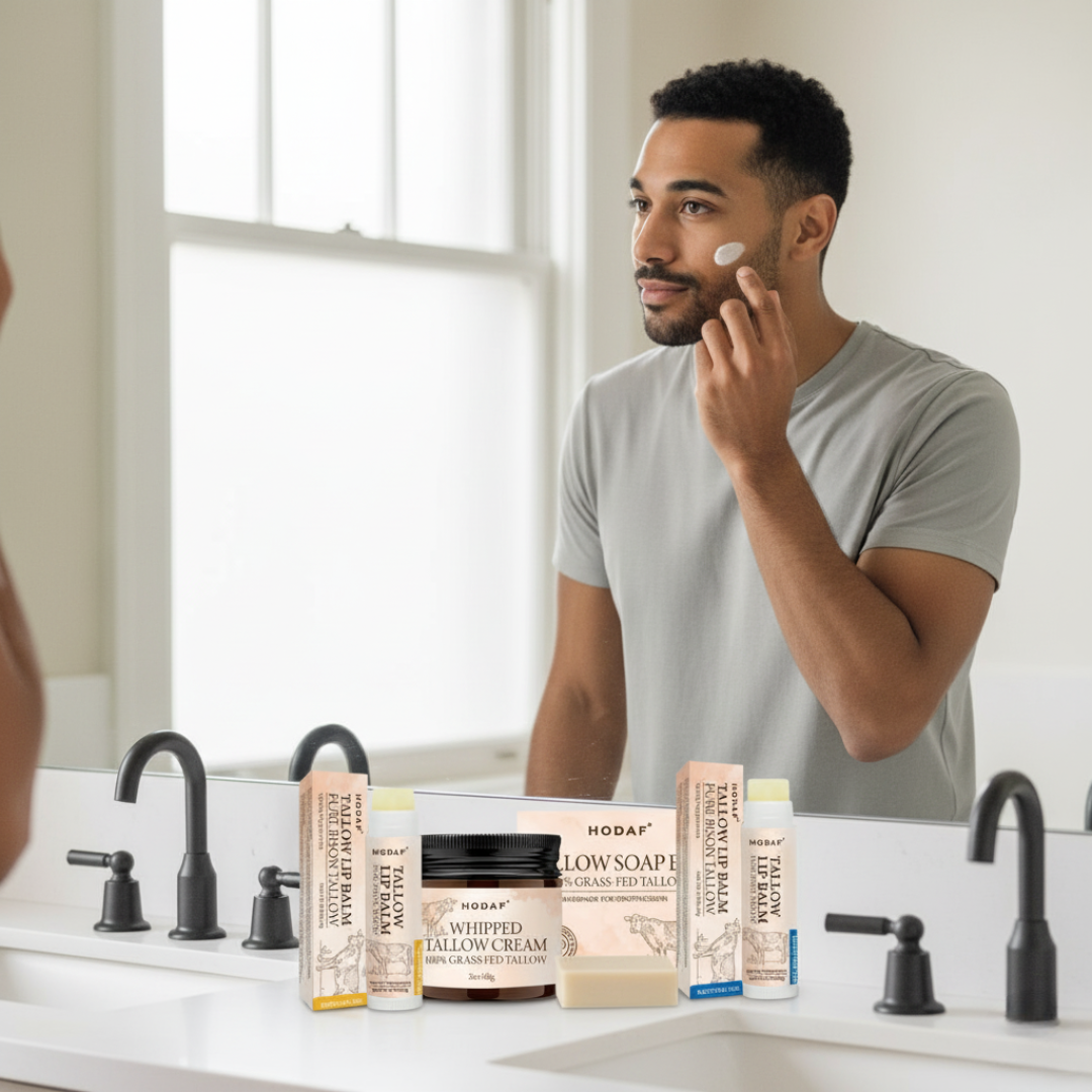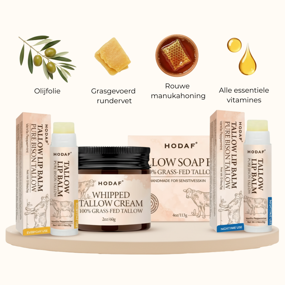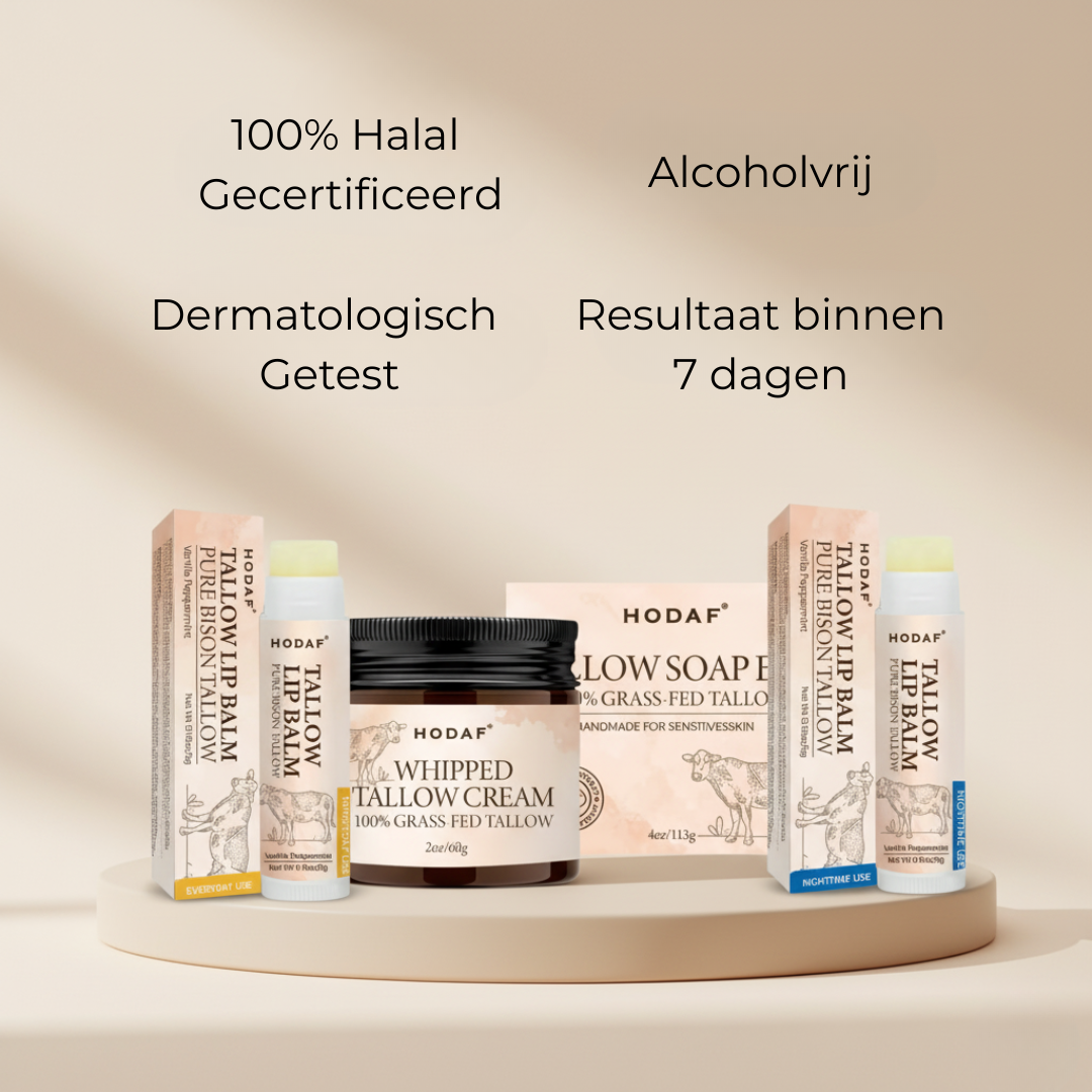 Met vitamines A, D, E & K uit grasgevoerde halal tallow herstel je de huidbarrière op natuurlijke wijze.